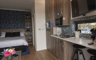 The pod comes with a king-size bed and a sofa bed also a kitchenette with gas hob, oven, fridge, microwave and all the kitchen essentials. This pod is pet friendly.