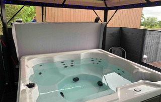 Luxury self-catered holiday lodges set on a scenic trout fishery. Each two-bedroom lodge comes with its own hot tub with stunning views of the fishing ponds and fabulous views of the Isle of Arran. Our self-catered lodge has everything you need to make your stay as comfortable as possible. It comes with its own hot tub with stunning views, two bedrooms, the master has an ensuite shower room. A kitchenette with a hob, oven, fridge freezer, microwave and all the essentials. The open plan living area is the perfect entertaining space, with a wood burner effect electric fire. We also have WiFi with Netflix included in the cost. The lodge has central heating, double glazing and sliding doors. Fishing is extra. No visitors allowed on-site!